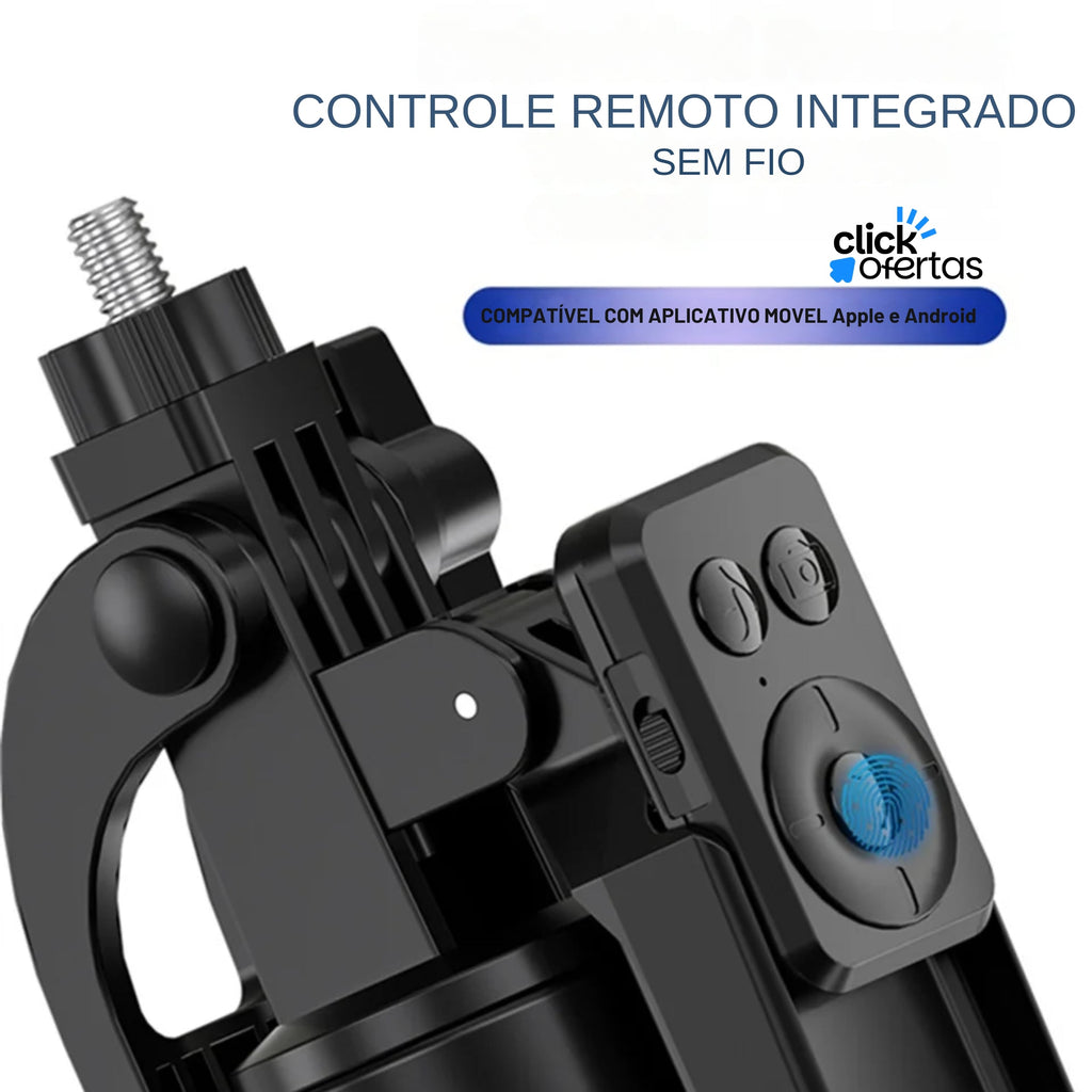 O controle remoto integrado via Bluetooth permite que você capture fotos ou inicie vídeos de longe, facilitando selfies, gravações solo e lives com liberdade total de movimento.